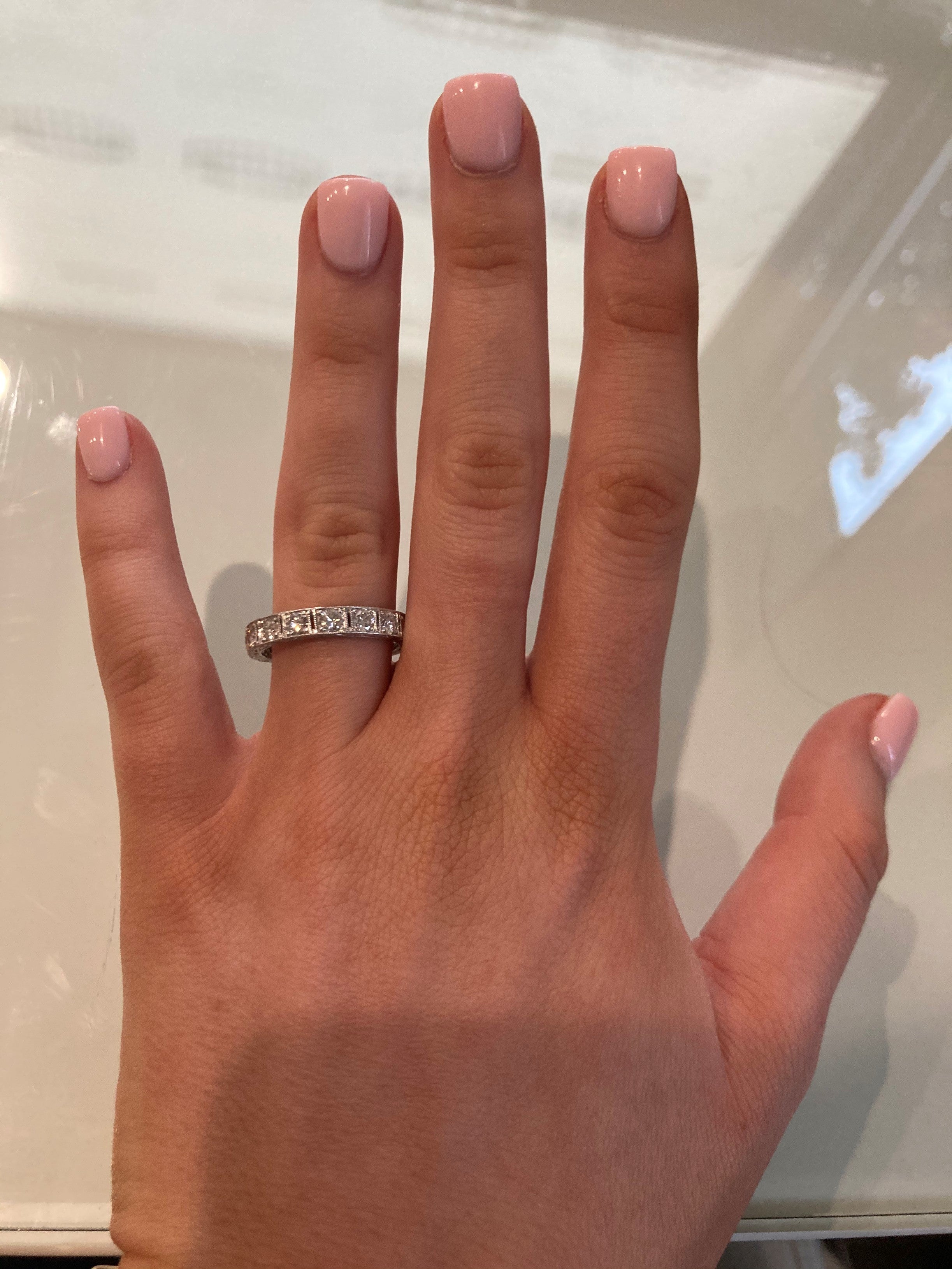 Platinum Art Deco Large Square Eternity Band with Engraving