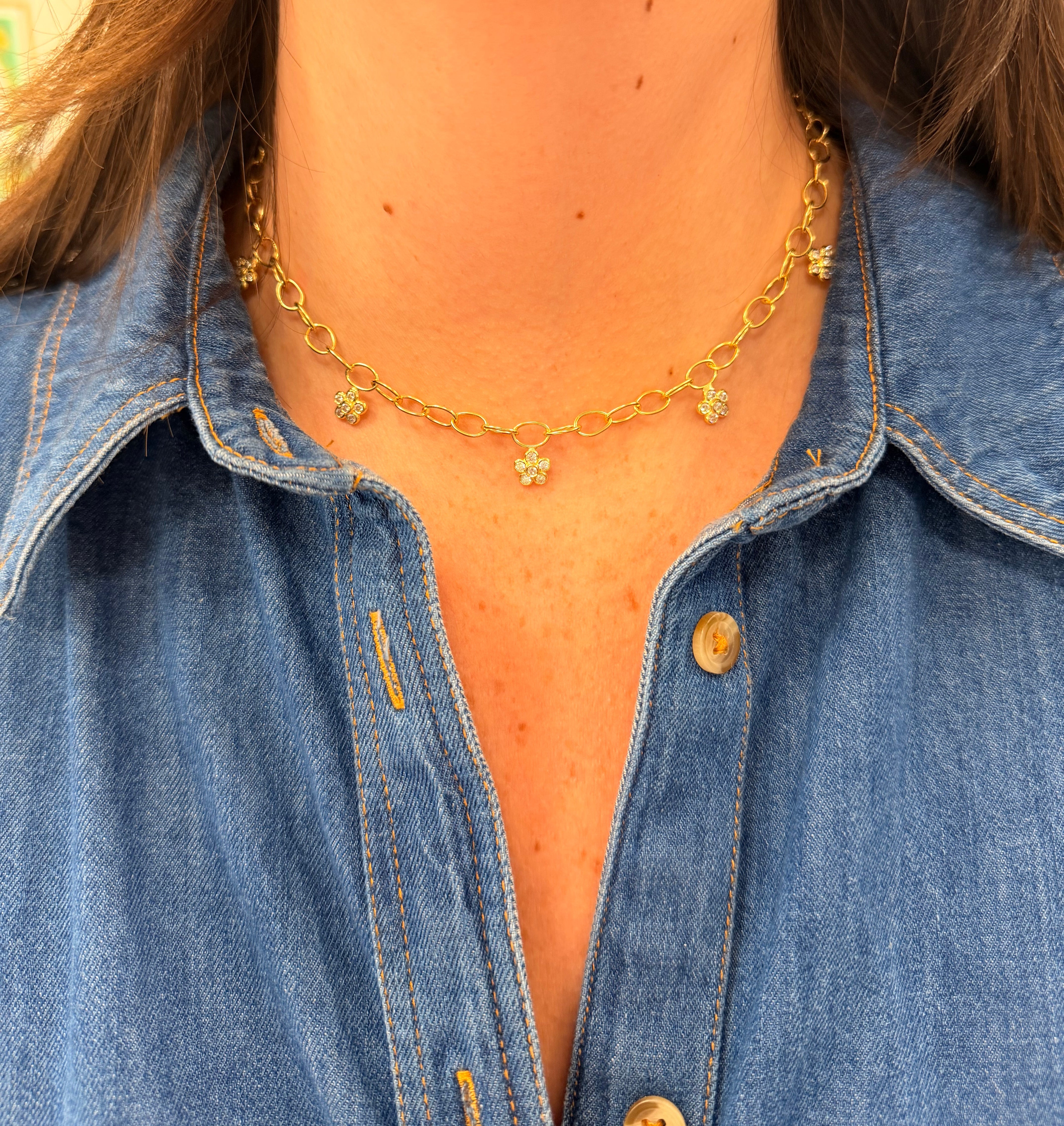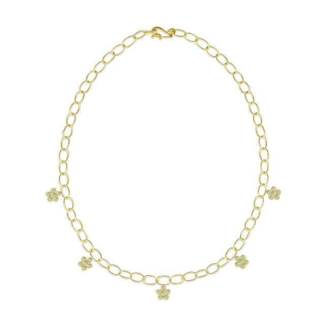 LPL Signature Collection 18K Yellow Gold 5 Station Diamond Flower Link Necklace