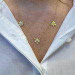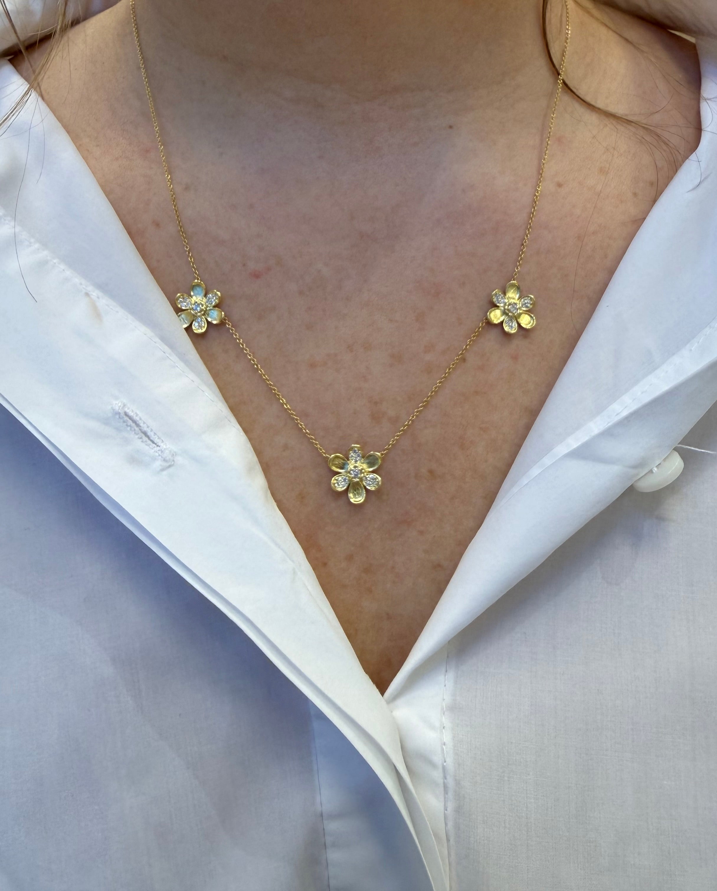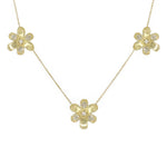 LPL Signature Collection 18K Yellow Gold Large Pave Diamond 3 Station Flower Necklace