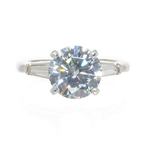 Platinum Round Brilliant Cut Diamond with Tapered Baguettes