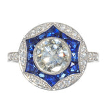 Platinum Diamond and Sapphire Ring
