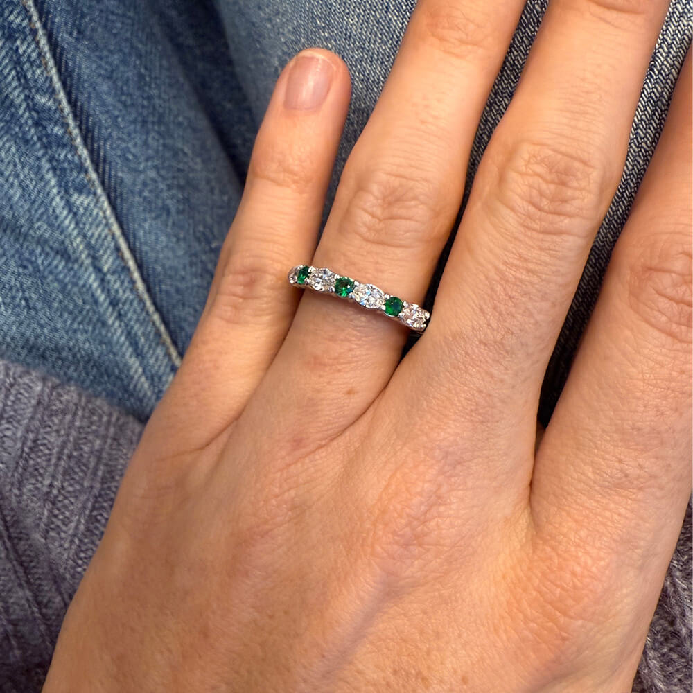 Platinum Emerald and Oval Diamond Half Eternity Band