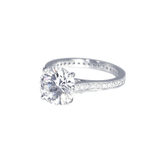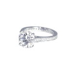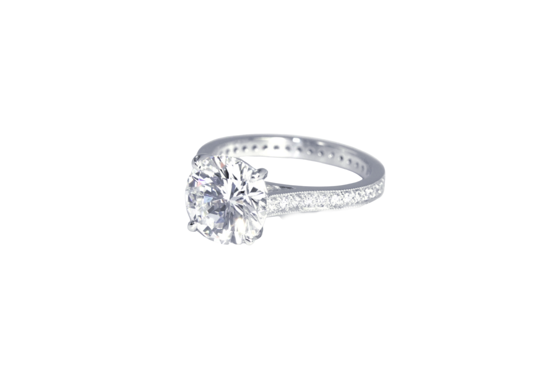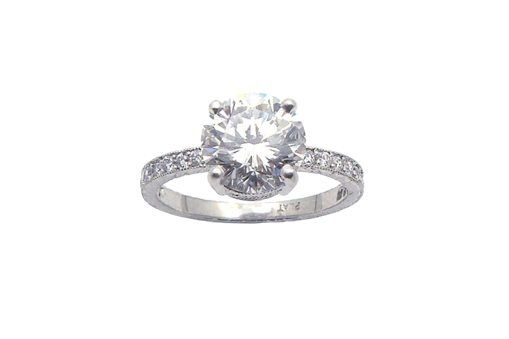 Platinum Round Brilliant Diamond Ring with Beadset Diamond Band